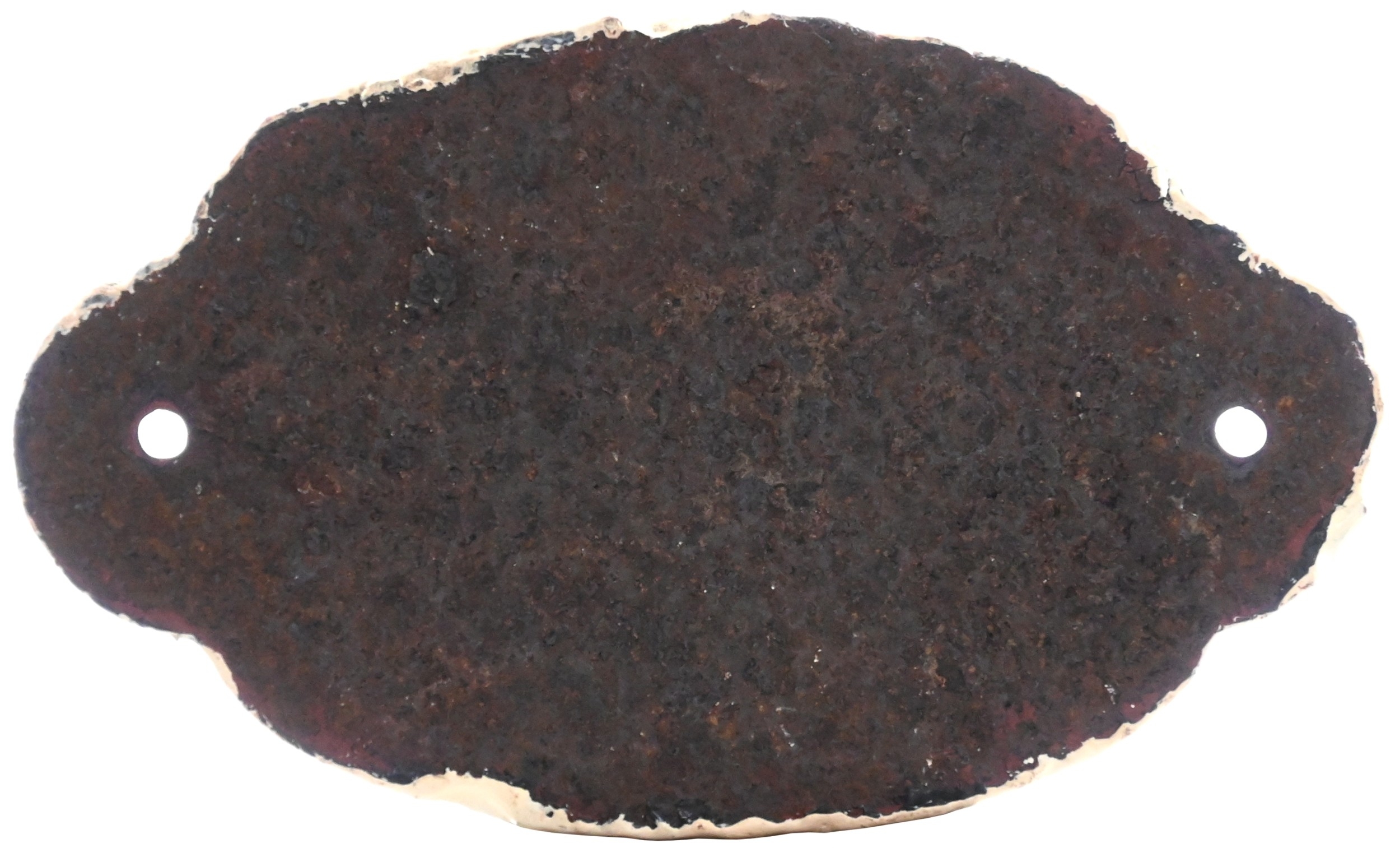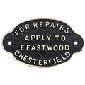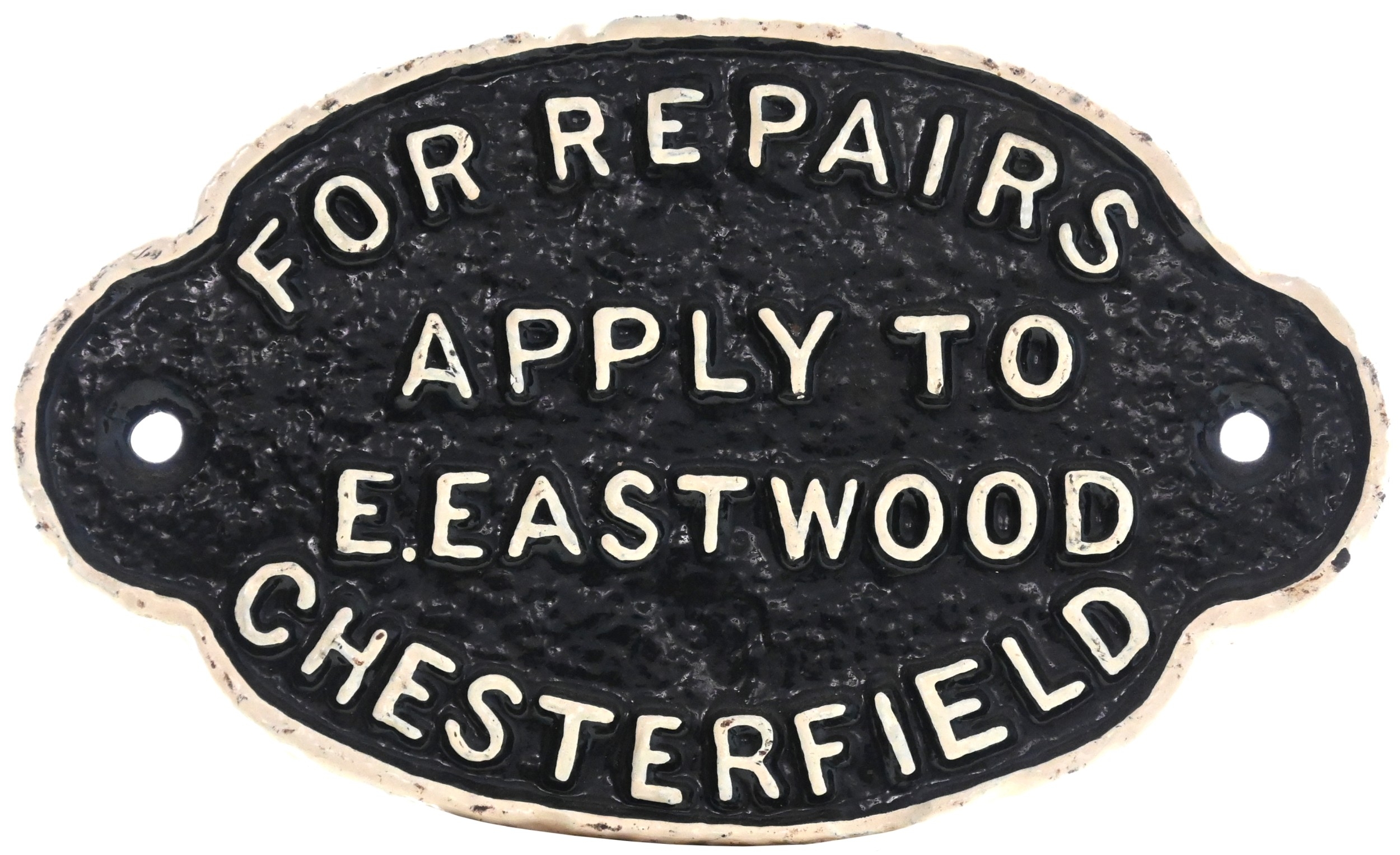 A wagonplate, FOR REPAIRS APPLY TO E. EASTWOOD, CHESTERFIELD. Cast iron, 7¾"x4¾", the front repainted. (Collect from Banbury Depot/Posted by Woodford Halse Office)