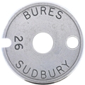 A Tyers No 6 single line tablet, BURES-SUDBURY, (aluminium), a section on the route from Marks Tey to Bury St Edmunds and Cambridge. (Collect from Banbury Depot/Posted by Woodford Halse Office)