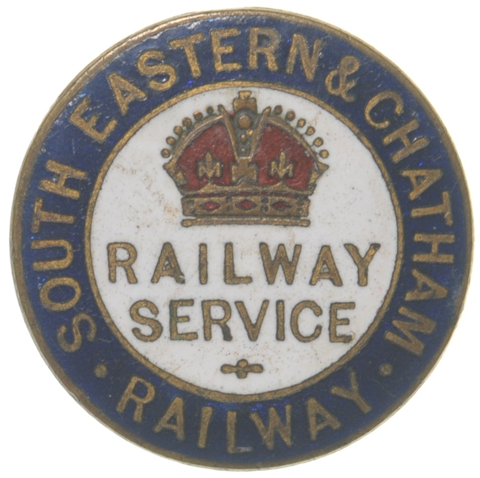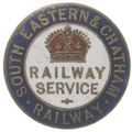 A First World War Railway Service badge, SOUTH EASTERN & CHATHAM RAILWAY, by J A Wylie & Co, enamelled brass. (Collect from Banbury Depot/Posted by Woodford Halse Office)